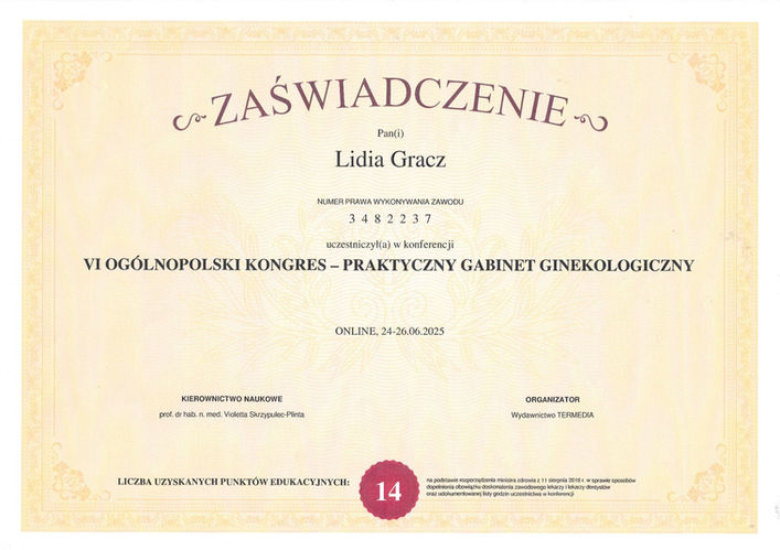 W swojej pracy ogromną wagę przykładam do indywidualnego podejścia, poczucia bezpieczeństwa oraz komfortu pacjentek. Stale rozwijam swoje umiejętności, uczestnicząc w konferencjach naukowych i specjalistycznych kursach, aby móc oferować leczenie zgodne z najnowszymi rekomendacjami i światowymi standardami medycznymi.